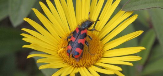 Bei dem recht kühlen Wetter waren an diesem Tag die Insekten eher passiv, konnten dadurch aber besonders gut beobachtet und fotografiert werden. Einige Schmetterlinge saßen in Ruhestellung an den Pflanzen und überdauerten so die regnerische Periode.