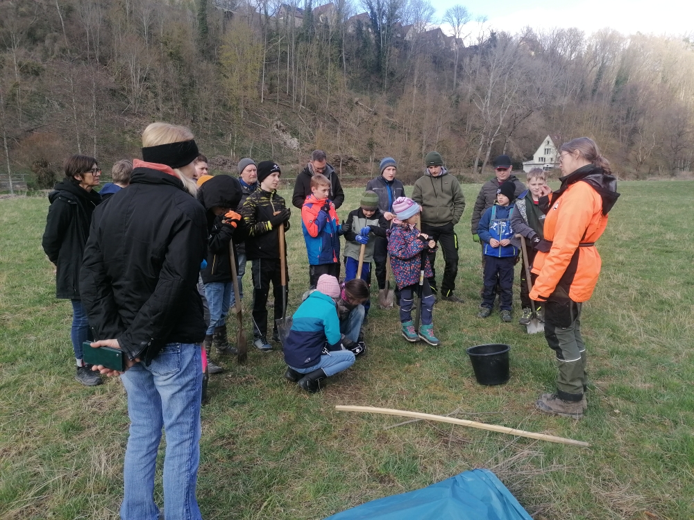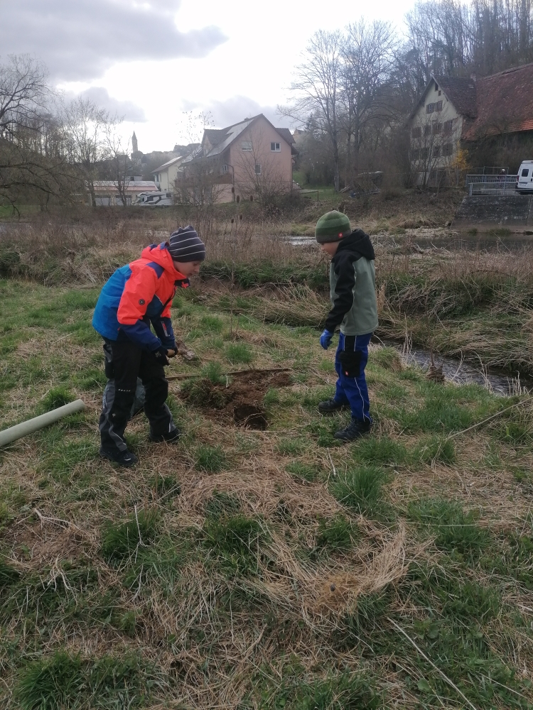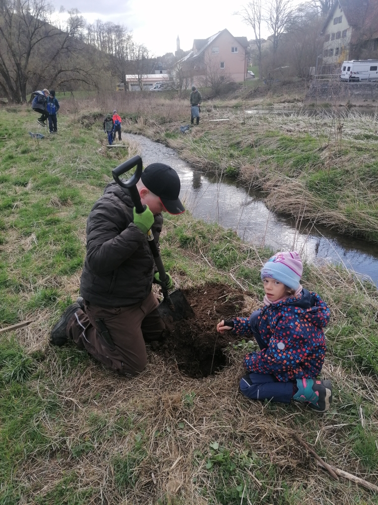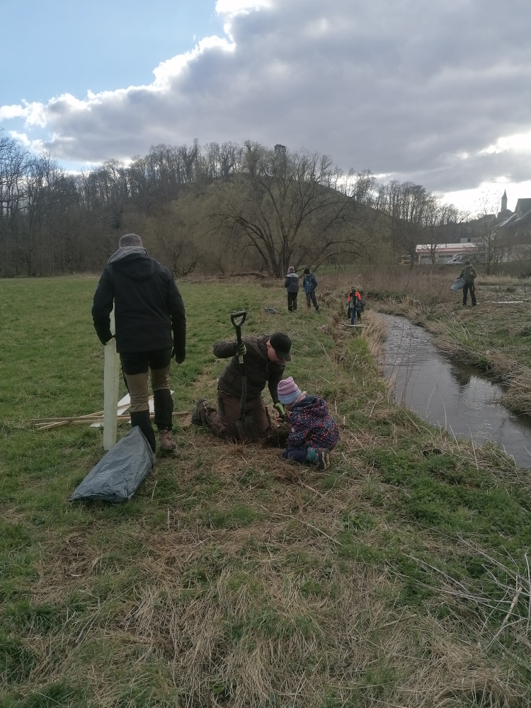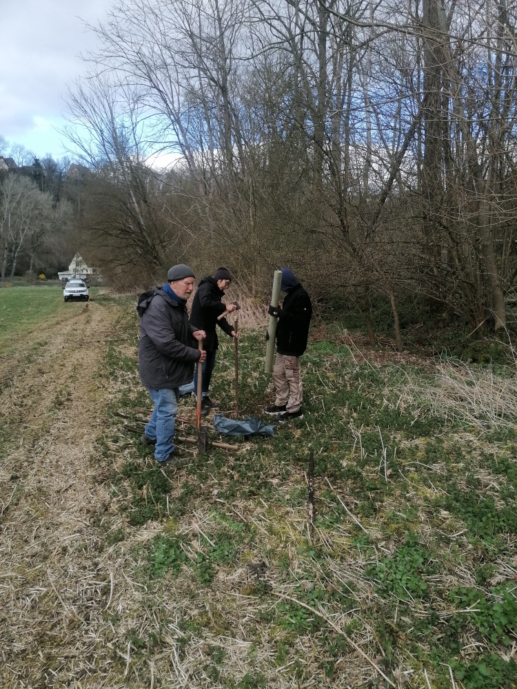Auch in diesem Jahr haben wir wieder eine Baumpflanzaktion zum „Baum des Jahres“ durchgeführt. Auf unserer Lise-Weinmann-Wiese haben die Jugendgruppe, einige erwachsene Mitglieder unserer Ortsgruppe mit tatkräftiger Unterstützung durch BM Axel Rudolph und die Försterin Florentine Blessing entlang der Jagst und am Waldrand Zitterpappeln gepflanzt. Ein idealer Standort für den „Baum des Jahres“ 2026! Hoffen wir, dass möglichst viele Exemplare anwachsen werden und so für die nötige Beschattung des Gewässers sorgen.