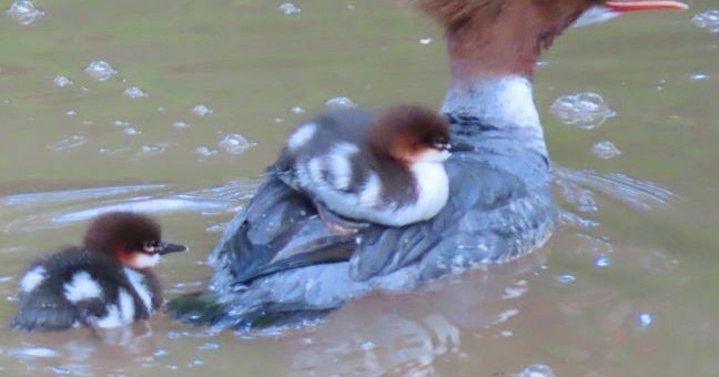 Im Mai 2024 wurde dieses Gänsesäger-Weibchen hier mit 5 Jungen bei Geislingen an der Bühler beobachtet. Diese Jungen waren noch so klein, dass sie wahrscheinlich irgendwo dort in der Nähe...