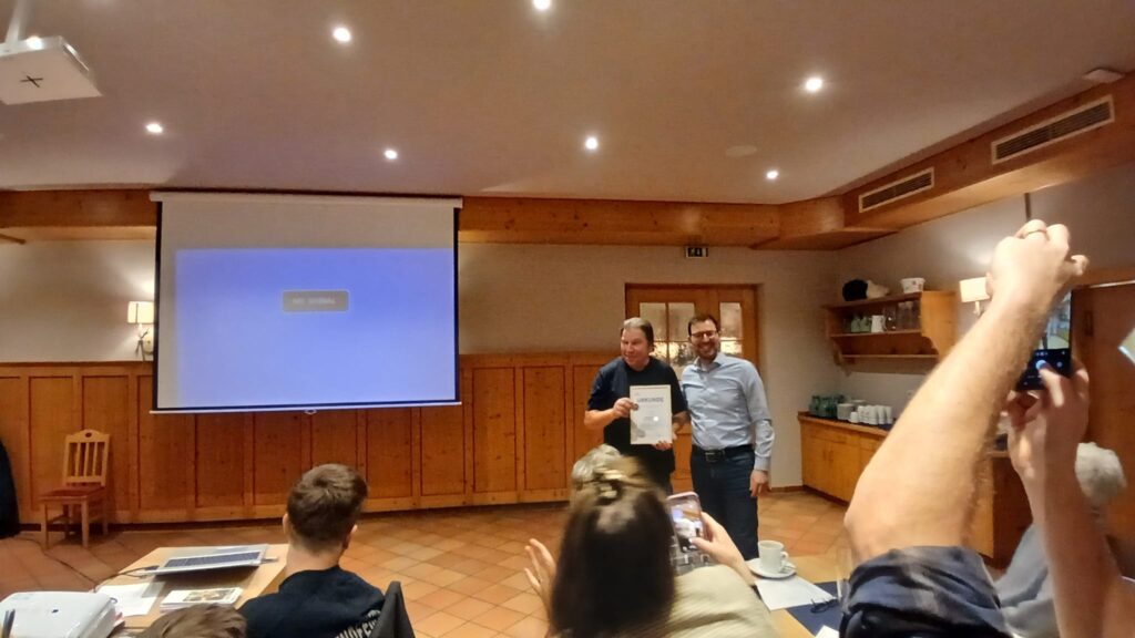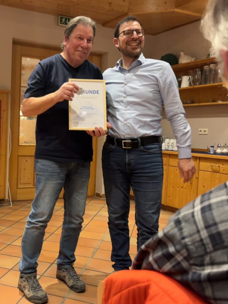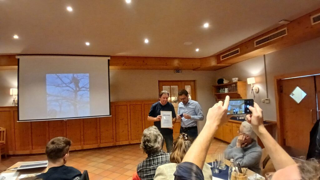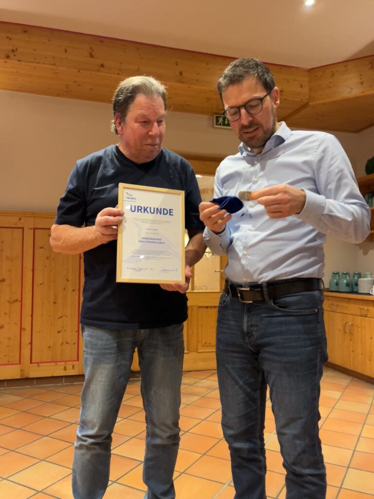 Anfang Februar fand im Nebenzimmer des Autohofs in Kirchberg die Jahreshauptversammlung der NABU Ortsgruppe Kirchberg/Jagst statt. Nach einem gemeinsamen Abendessen erfolgte der Jahresbericht des 1. Vorsitzenden Bruno Fischer, der anhand von Fotos die Aktivitäten der Ortsgruppe erläuterte. Im Anschluss daran wurde ihm von Johannes Enssle, dem NABU Landesvorsitzenden von Baden-Württemberg, die „Ehrenmedaille für eine herausragende NABU-Persönlichkeit“ verliehen. Die beiden Jugendvertreter stellten dann die Unternehmungen der Jugendgruppe im vergangenen Jahr vor, bevor Kassenbericht und Bericht der Kassenprüfer erfolgten. Der anwesende Bürgermeister Axel Rudolph nahm die Entlastung vor und sprach ein Grußwort der Stadt Kirchberg. Alle Vorstandsmitglieder wurden dann bei den turnusgemäßen Wahlen einstimmig wiedergewählt. In einer sehr lockeren und angenehmen Atmosphäre klang der Abend noch bei interessanten Gesprächen aus.