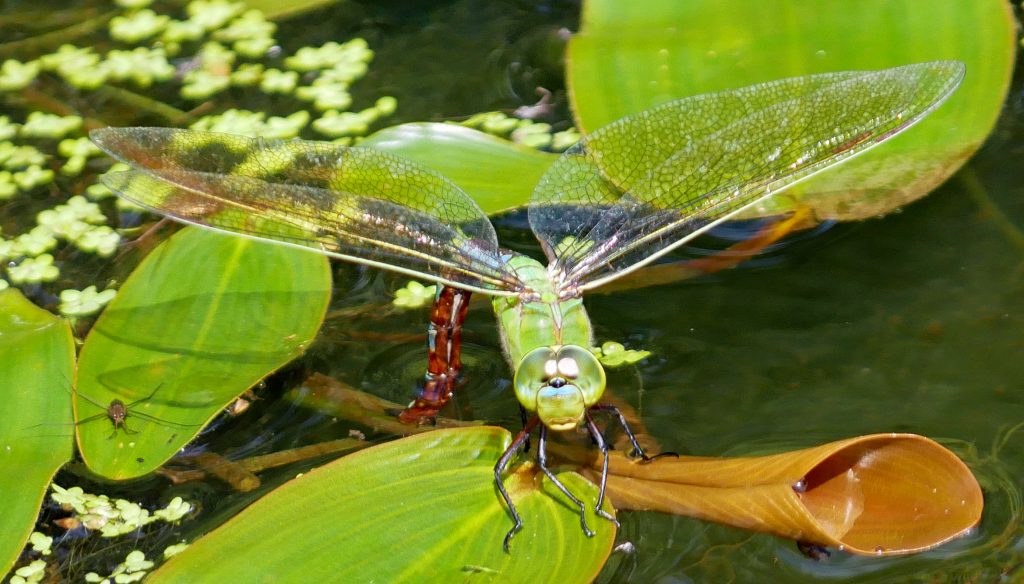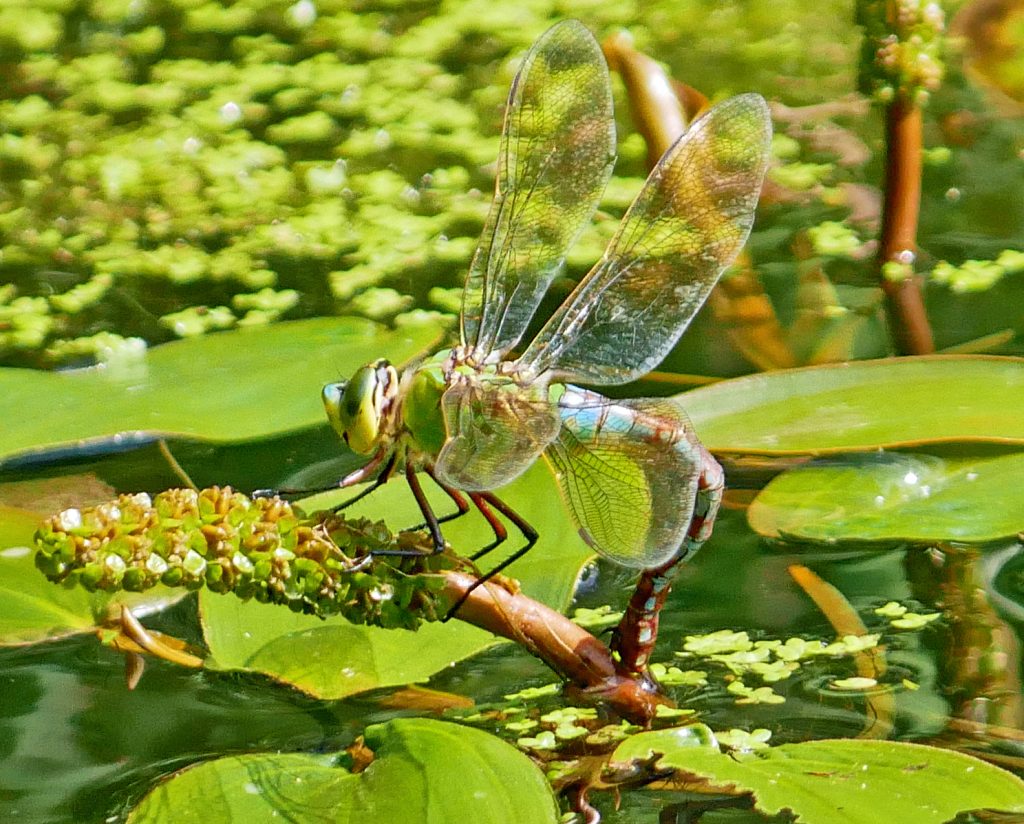 Hier noch eine Fronansicht der weiblichen Großen Königslibelle bei der Eiablage (Bild: TrkaP)