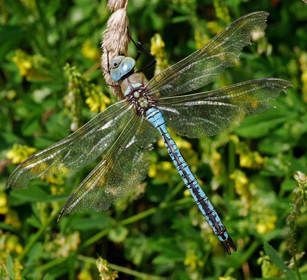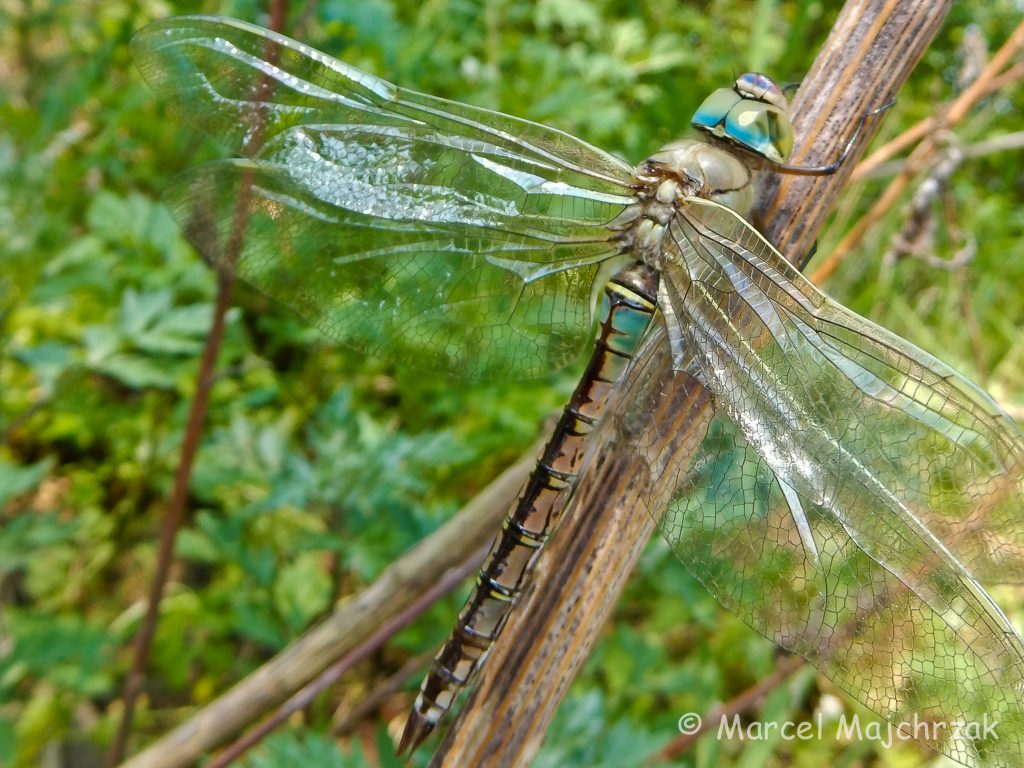 Betagtes Männchen der Großen Königslibelle mit beschädigten Flügeln, vermutlich vom Revierkämpfen (Bild: TrkaP)