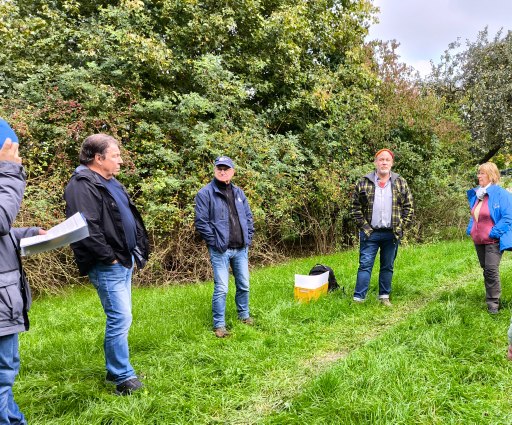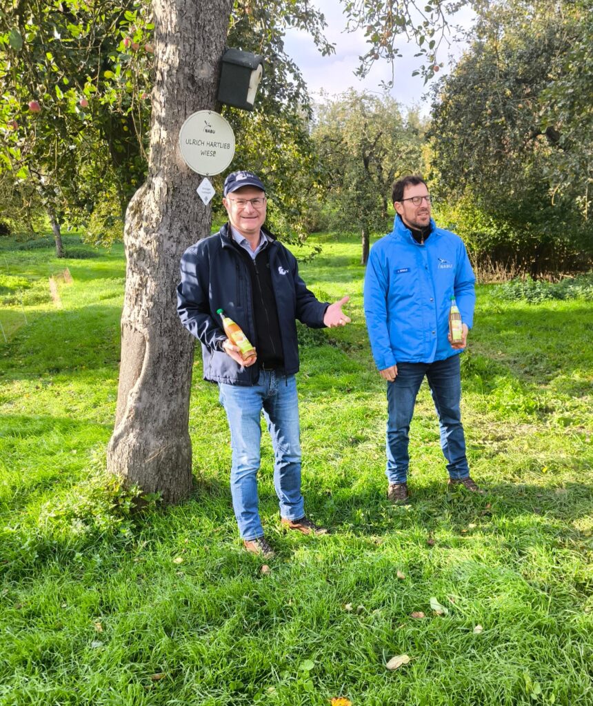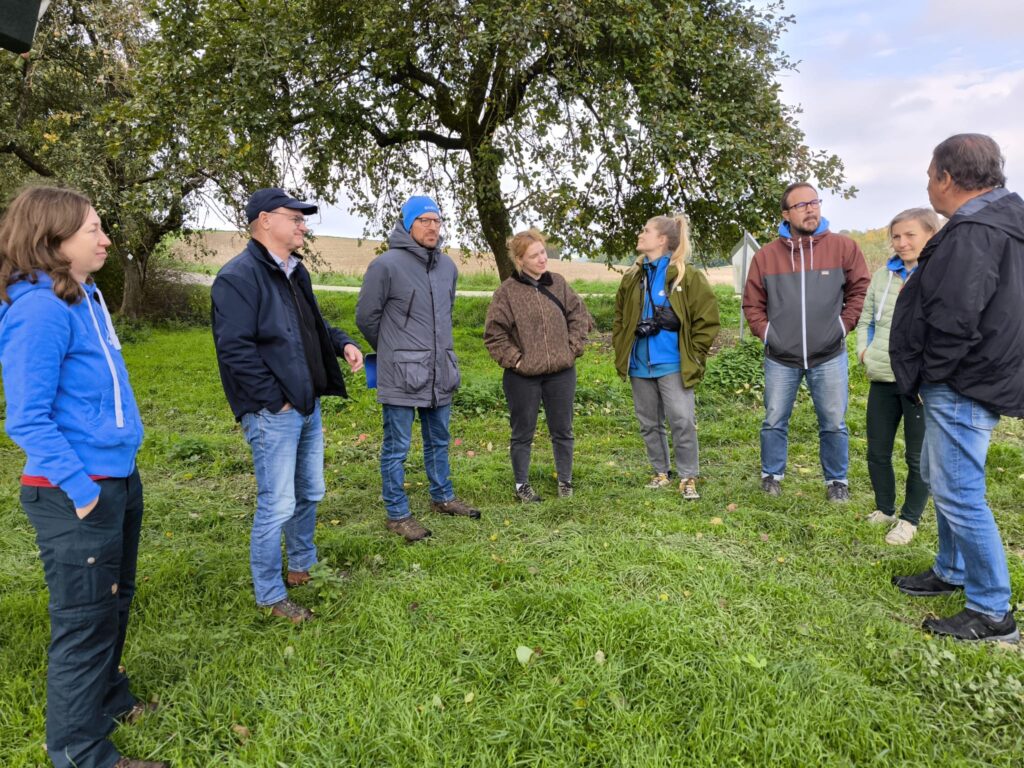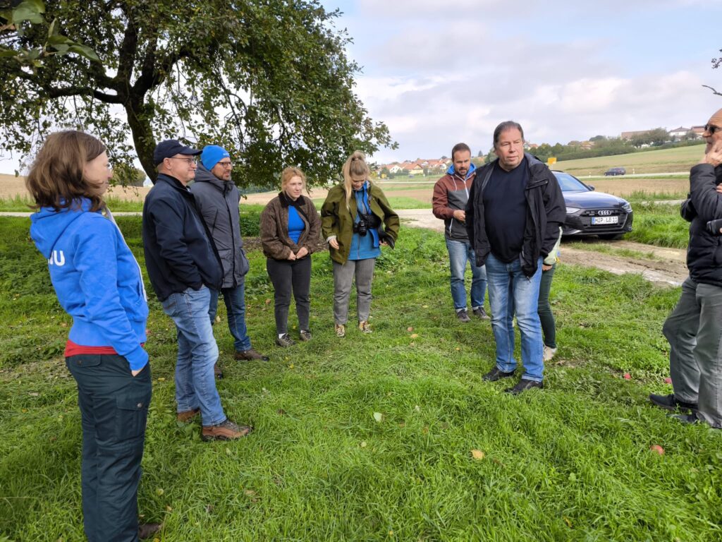 Anlässlich eines zweitägigen Besuches von sechs Vertretern des LBV aus Bayern beim NABU Landesvorstand zum Thema „Biodiversität in Baden-Württemberg“ kam die Gruppe auch zum NABU Kirchberg. Zwei Tage lang reisten die Landesvorstände durch Hohenlohe und besuchten verschiedene Stationen, so dann auch als Abschluss die NABU Ortsgruppe Kirchberg zum Thema „Streuobstwiesenkonzeption“ und „Streuobstwiesenschutz“. Auf der Ulrich Hartlieb Wiese wurden die „Streuobstaktivitäten“ unserer Ortsgruppe vorgestellt und die Probleme der Streuobstwiesenbewirtschaftung erörtert.